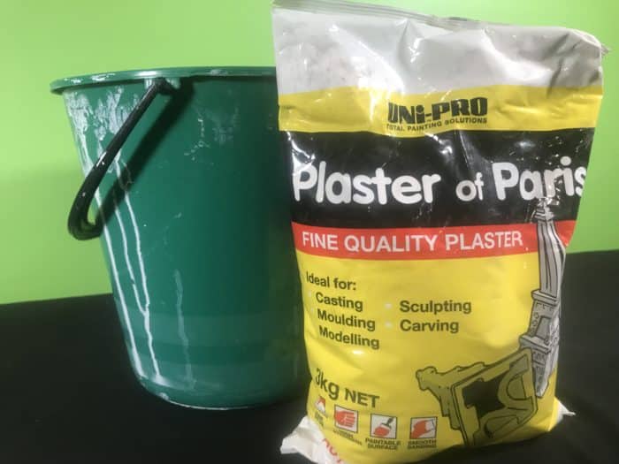 After rain, mix up the plaster of paris with water. Don’t make it too thick as you want a good mold. You may want to make this mix just prior to pouring into the footprints, otherwise the plaster could set before you find the footprints!