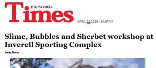 The Inverell Times – Slime, Bubbles and Sherbet workshop at Inverell Sporting Complex. April 17, 2019