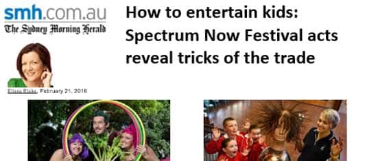 Sydney Morning Herald – How to entertain kids: Spectrum Now Festival acts reveal tricks of the trade. February 21, 2016