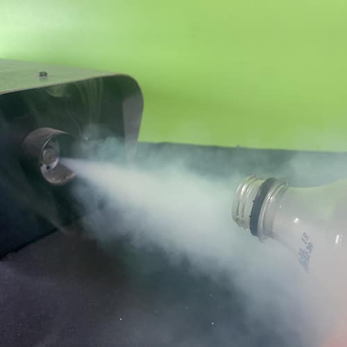Warm-up your fog machine and then fill your soft drink bottle with stage fog. That’s it, you’re ready to go!