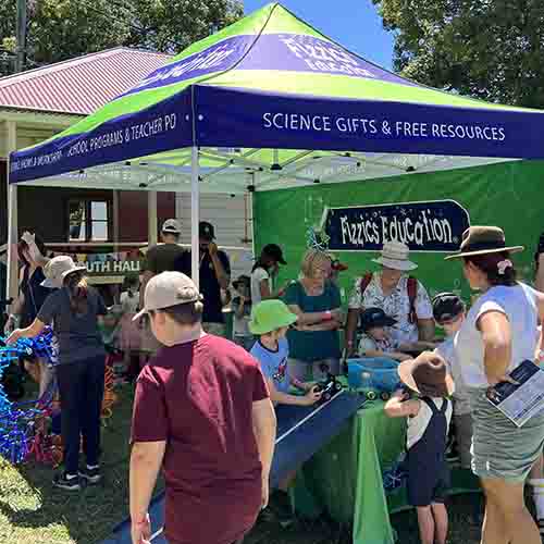 Below is a typical presentation timetable that we have run for most agricultural shows. If you have had us before, we can bring other show content instead! 8:00am to 9;00am Setup 9:00am to 11:00am – Science of toys 11:00am to 11:30am – Liquid Nitrogen Show 11:30am to 12:30pm – Science of toys ***12:30pm to 1:00pm – Break 1:00pm to 1:30pm – Liquid Nitrogen Show 1:30pm to 2:45pm – Science of toys 3:00pm to 3:30pm – Liquid Nitrogen Show 3:30pm to 4:00pm – Science of toys 4:00pm to 4:30pm Pack down We can bring our 3 m x 4.5 m tent for events when available. We are also linked with the Primary Industries Education Foundation Australia where we can bring content relating to food & fibre alongside the hands-on science activities. Going further Many schools know us through our school science visits. Contact us to find out how we can work with local schools with a show linked to their curriculum. This is also an opportunity for us to promote your show the day prior with all of the students! Many families follow us on social media. We can work with you to get the word out about show!