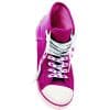 • A pink high top show with white laces that has pink butterflies on them. The packet is next to the shoe