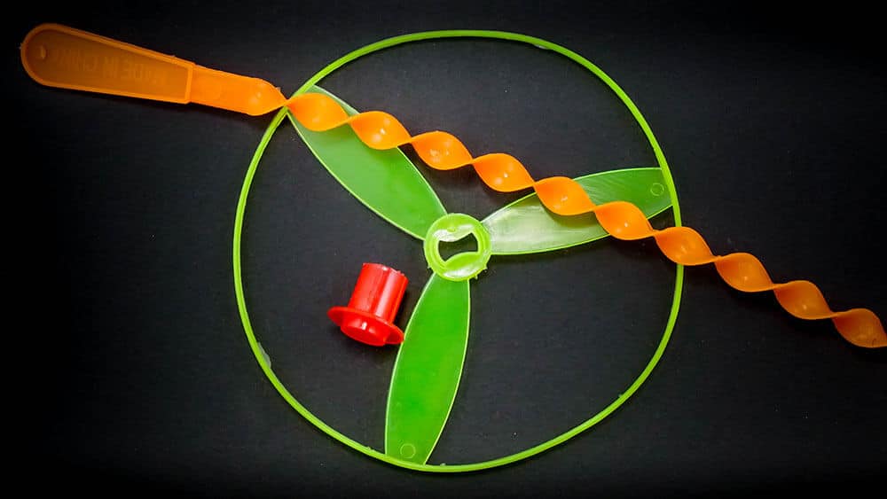 • Thread the small cylinder over the spiral and then place the helicopter on top of the cylinder.