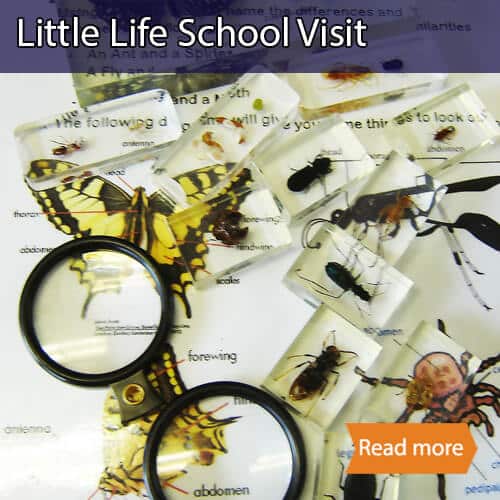 Little Life school science visit tile showing magnifiers and various little creatures embedded in resin