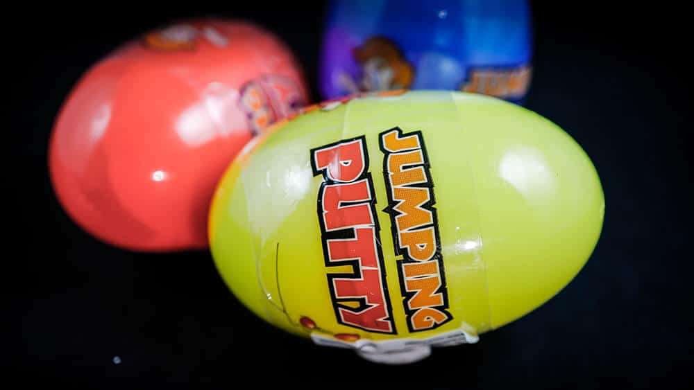 The jumping putty comes shrink-wrapped and stored in an individual container.