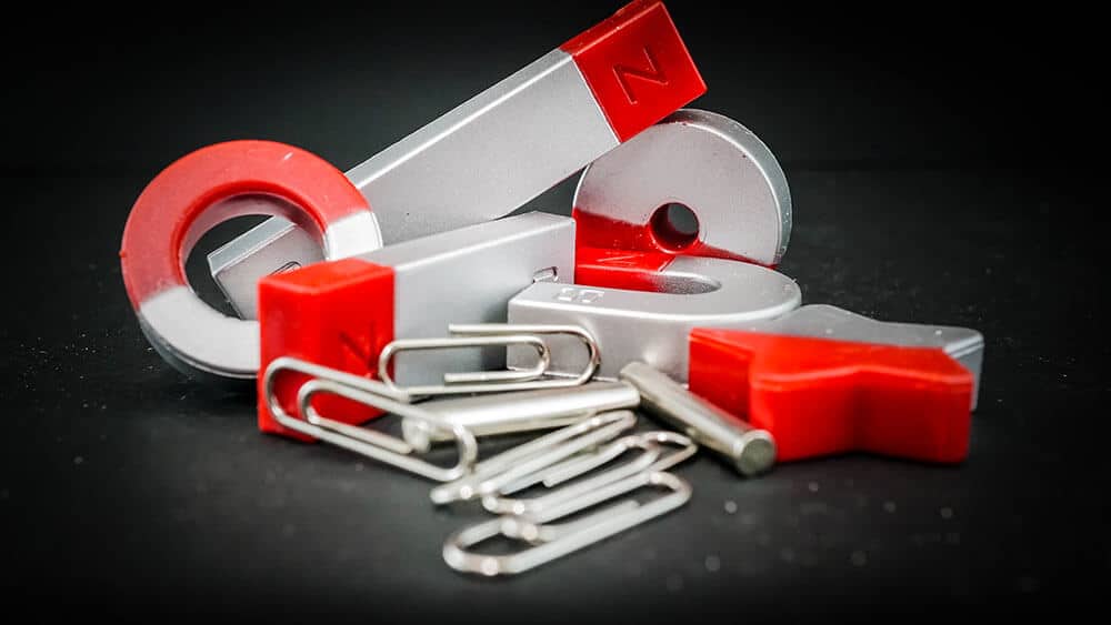 Investigate many magnetic experiments with this nifty 8 piece magnet kit