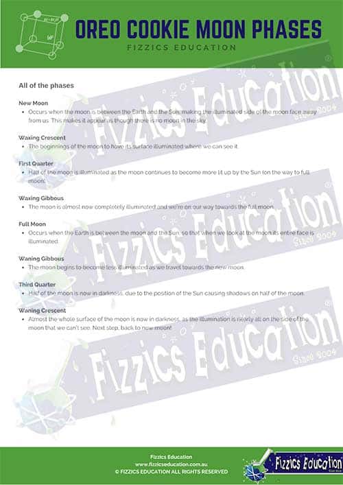 Oreo Moon Phases Activity Worksheet (5) : Fizzics Education