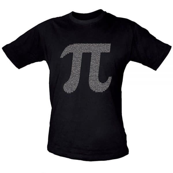 A black t-shirt with the Pi symobol on it. Close inspection shows that the symbol is made of numerals of Pi!
