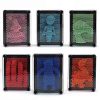 • 6 different images of a pin art toy. Each pin art toy is a different colour (red, pink, light blue, dark blue, green and bright red). There are shapes within the pin art toys; a face, a person, a bird, a dinosaur, a hand and a doll