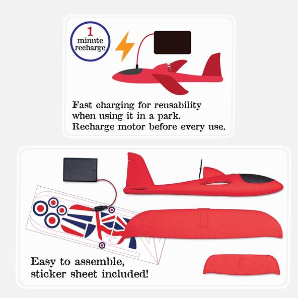 • A lightweight plane powered by a battery pack (3 xAA batteries not included)