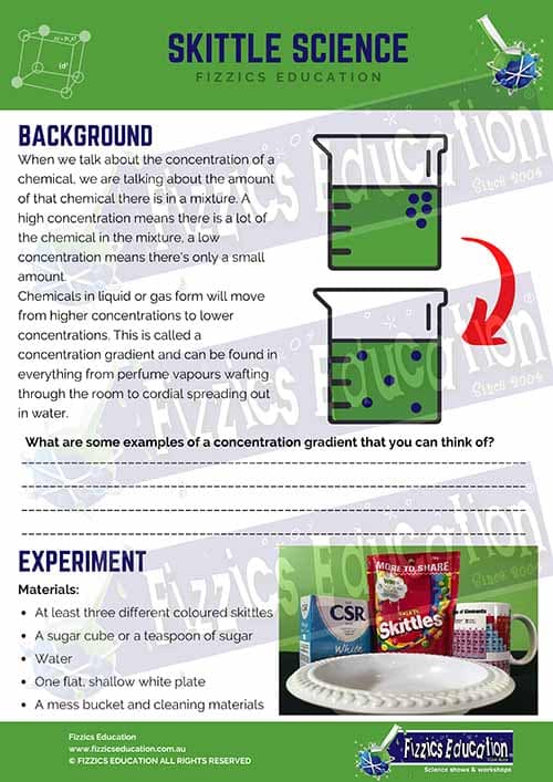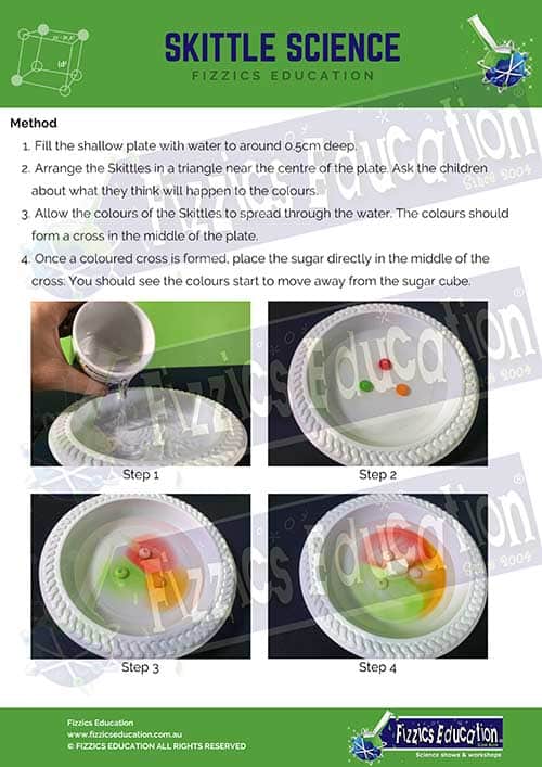 • The method on how to conduct the skittle science experiment and an extension activity based on heat