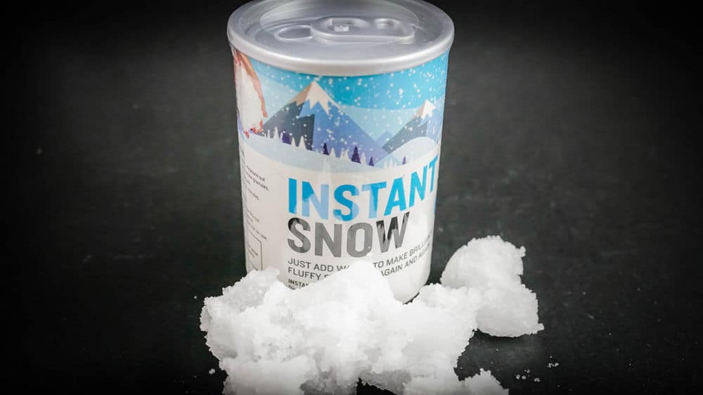 A super absorbent polymer that soaks water and ‘grows’ before your eyes. Feels like real snow!