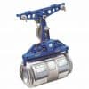 • A blue tin cable car kit carrying an aluminum can