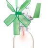 • A picture showing a green windmill attached to a softdrink bottle. There is a generator attached to the windmill