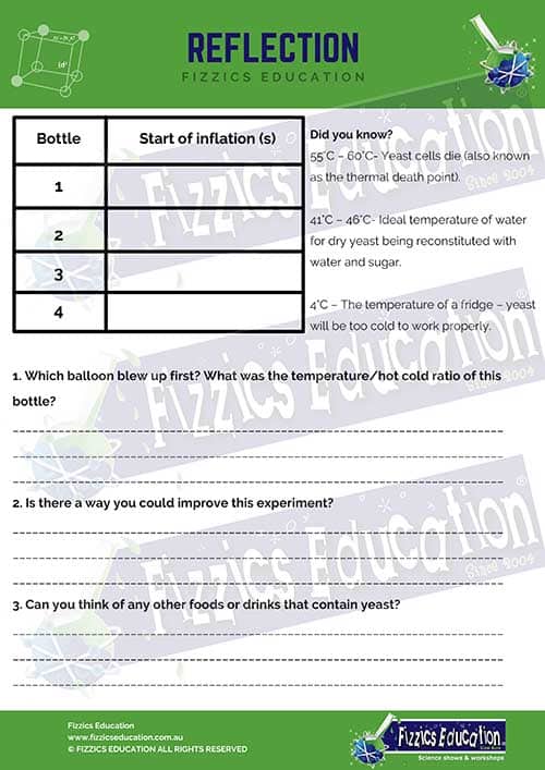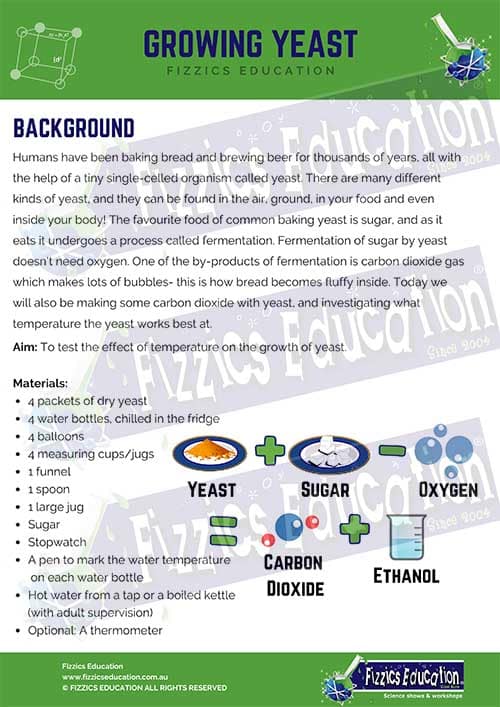 Yeast Growth Student Activity Sheets (4) : Fizzics Education